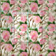 Beautiful pattern of pink peony blooms, leaves and buds. These lovely flowers bloom in spring or early summer but their beauty makes us smile all year long.