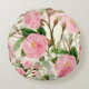 Pink Peony Flowers, Leaves & Buds Pattern Round Cushion