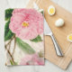 Pink Peony Flowers, Leaves & Buds Pattern Tea Towel