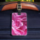 I was happy with the acrylic tag but it came with a thin leather strap to attach the tag to luggage (like a cat collar). I replaced the strap with a metal ring off of a key ring as the leather strap would come undone or break easily as luggage is sometimes handled without much care by airlines. Printing is great. Colours and positioning of the design I put on the tag were perfect. Very pleased.
