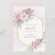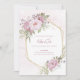 A soft pink floral wedding invitation with pink peonies in a polygonal frame