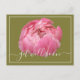Pink Peony With Dew Drops Green Backdrop Get Well Postcard