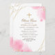This invitation features pink, watercolor flowers with gold speckles and gold crisscross lines. The cross can be dragged to any location, made larger or smaller or eliminated making this a versatile invitation. (<a href="https://www.freepik.com/free-photos-vectors/frame">Frame vector created by pikisuperstar - www.freepik.com</a>). <br/><br/>The card is easy to customise with your wording, font and font colour.<br/><br/>Not exactly what you're looking for? All our products can be custom designed to meet your needs at no extra charge.<br/><br/>Simply contact us at askcottonlamb@gmail.com.<br/><br/>Coordinating products available: Just ask us!