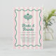 Throw a birthday party by the pickleball court with this elegant and vintage-inspired pickleball party invitation. It features a light pink striped background, a curvy, wavy green frame, "dinks and drinks" text in a groovy font, and an illustration of two pickleball rackets and a pickleball. The back of the card features a contrasting light green striped background.