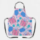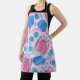 This pink pickleball apron will protect your clothes in the kitchen. The pink design has blue pickle ball paddles and balls with some blue paddles in a pink drawstring bag. The pickleball design can be found on other items in my store, PageCreativeDesigns.