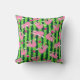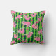 Cuts pink sloths on stripy green watermelon background. They wake up for pickleball. Throw Pillow with pink pickleball motif