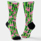 Cuts pink sloths on stripy green watermelon background. They wake up for pickleball. Socks with pink pickleball motif
