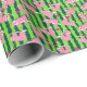 Cuts pink sloths on stripy green watermelon background. They wake up for pickleball. 🦥 Wrapping Paper with pink pickleball motif
