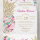 Pink Pineapple Floral Baby Shower & Diaper Raffle All in One Invitation
