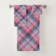 A Unique Pink And Blue Plaid Bath Towel Set For Any Type Of Décor.