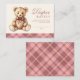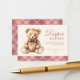 Pink Plaid Bear Baby Shower Diaper Raffle Enclosure Card