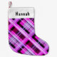 A bright and festive Christmas stocking, in an attractive pink plaid design. Personalise the stocking with the recipient's name, which will appear in black lettering on the white panel at the top. Combining rustic tradition with modern style, the stocking is ideal for Santa to fill with suitable surprises, as well as being a chic addition to your holiday decor.