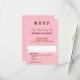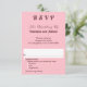 Collect your guests’ responses with this pink plain text portrait RSVP, a colour for couples who see pink as a symbol of romance, love, and gentleness, and prefer a plain text design for easy reading. The fonts used are calligraphy, script and sans serif. Calligraphy and script fonts are used to enhance the style while the sans serif font is used to enhance readability and clarity. Customise it by typing the names of the bride and groom, RSVP details and meal choices. You can also change the contents or wordings in the design tool including the font style, font colour and background colour. Please check the appearance of the front and back sides after typing texts. If the appearance is pleasing to you, you can place your order now. If you need to resize or reposition the texts, please adjust in the design tool. To the bride and groom, congratulations on your engagement! Wishing you both a lifetime filled with love and happiness.