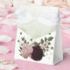 Romantic beautiful pink and plum burgundy flowers with green leaves botanical wedding favour box.