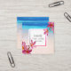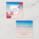 Share the Love Refer a Friend Custom Referral Card design features pink plumeria flowers set on the corners against a beautiful, peaceful white sandy beach background. Gorgeous, unique square referral cards that come in packs of 100.
