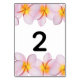 This design features pink frangipani / plumeria flowers. A tropical design elegantly framed with pink frangipani flowers. These popular tropical Hawaiian flowers are ideal for an elegant destination beach wedding. Tropical wedding table number design with modern elements. Matching wedding invitations and other stationery items are also available. Customise the number and purchase each tables number individually according to how many table numbers you need.