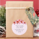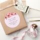 Round plumeria return address stickers to use as envelope seals. Pretty Hawaiian plumeria in pink and orange decorate the top of round or square stickers (those shapes work best for this design) with name template in elegant handwritten font. Address is printed beneath names over a pale pink background. Stickers come in two sizes.