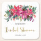 Pink Poinsettia Christmas Bridal Shower Square Paper Coaster