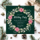 This fun and festive holiday party invitation features a watercolor Christmas wreath with pink poinsettias and holly on a dark green background. The text combines handwritten script and serif fonts for an elegant and sophisticated look. This is perfect for holiday parties, brunches, dinner parties, open house and more.