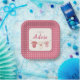 Celebrate the upcoming arrival of your precious baby girl with these "A Girl to Adore" baby shower paper plates. The charming design features a sweet pink polka dot border, setting a festive and adorable tone for your celebration. Three darling baby bodysuites are artfully displayed on a clothesline, each uniquely decorated with hearts and a delicate bow, symbolizing the love and joy this new baby will bring. These plates are perfect for serving delicious treats and cake, adding a touch of whimsical elegance to your baby shower décor. Make your special event even more memorable with these delightful and practical party essentials.
