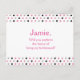 Such a fun way to invite a cherished friend to serve as a bridesmaid, this pink polka dot "Be my bridesmaid" invitation is the perfect choice. Featuring colourful pink, black and grey polka dots embellishments on the top and bottom, this fun design will warm their hearts. Purchase yours today!