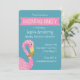 Cute pink polka dot flamingo birthday party invitation with a pink banner on turquoise. White quatrefoil net pattern on reverse. Customise the text for your own party type! Contact shopkeeper if you need assistance.