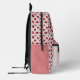 This cute kid's backpack features my hand drawn ladybugs against a pink and white polka dot backdrop. Easily personal with your monogram initials.