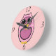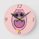 PINK POLKA DOT OWL ROUND CLOCK