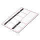 This is a perfect planner for busy families... easy to use and well organized.  Each page rips off after use and the new page is ready for the next week. Clear print and personal monogram is fun.
