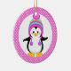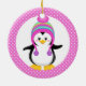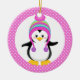 Pink Polka Dot Winter Penguin Girl Ceramic Ornament