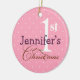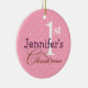 Pink polka dots purple name baby first holiday ceramic tree decoration