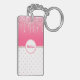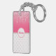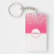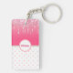 Pink Polka Dots & Silver Glitter Drip Personalised Key Ring