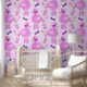 Whimsy watercolor pink poodle bow purple wallpaper. Original hand painted watercolor art and pattern design by Sarah Trett for www.mylittleeden.com