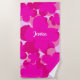 Beach towel Pink Popflower pattern on pale pink background with your first name. Editable text.