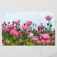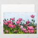This design features a beautiful image of a field of pink poppies in bloom. The bright color of the flowers looks incredible against the sunlit sky behind.
