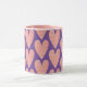 This pretty mug features a vintage plaid pattern re-created by me into pink, peach and purple tones and into a heart shape silhouette that is elongated for an artsy flair. The hearts are patterned around the mug on a complementary purple background. The handle and inside are a pink tone to complement the artwork, as well.