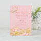 PINK AND GOLD PRINCESS BIRTHDAY INVITATION WITH CARRIAGE DESIGN, GOLD GLITTER DETAILS.