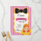 Celebrate her royal day with this pink-striped birthday invite featuring a crown, bow, and magical charm.