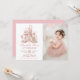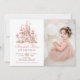 Pink Princess Castle Floral 1st Birthday Photo Invitation