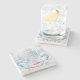 The coasters are gorgeous, a quality feel and heavy weight. They look like a precious archeological find. A rustic stone juxtaposed with a modern floral black and white print. I like the way the print goes slightly imperfect on the cut stone edges giving them a kind-of natural beauty.