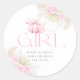 Pink Pumpkin Girl Floral Bow Baby Shower Classic Round Sticker