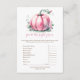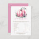If you're seeking charming fall baby shower ideas, our "Our Little Pumpkin" baby shower game is an ideal choice for your autumn celebration. This delightful activity features whimsical typography with the phrase "Guess The Right Price," complemented by an adorable pink pumpkin design. Shop more coordinating invitations and decorations from the Little Pumpkin collection: