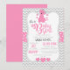 This baby shower invitation features a grey chevron pattern, a pink and white polka dot motif, and an adorable pink puppy wearing a white and grey polka dot bow on its ear. Your guests will fall in love with these 100% FULLY customisable baby shower invitations!