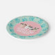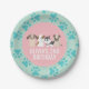 Pink, Mint and turquoise puppy birthday party plate with pink paw prints