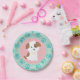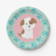 Pink puppy birthday party plate with pink paw prints