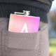 Pink and Purple Pastel Ombre Metal Elegant Monogram Flask. This Flask can be customised to include your initial and first name. The Pink and Purple Flask is perfect for a birthday or bachelorette party celebration.