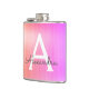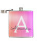 Pink - Purple Brushed Metal Monogram Name Hip Flask