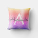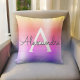 Pink, Purple and Gold Pastel Ombre Foil Brushed Metal Monogram Name and Initial Pillow. The pillow makes the perfect gift for someone decorating her room in girly ombre pink and purple.
