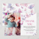 Pink Purple Butterfly Birthday Photo Thank You Card
