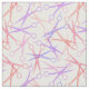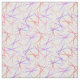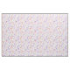 White hair stylist fabric with a scattered scissor pattern in different shades of pink, purple, and peach.